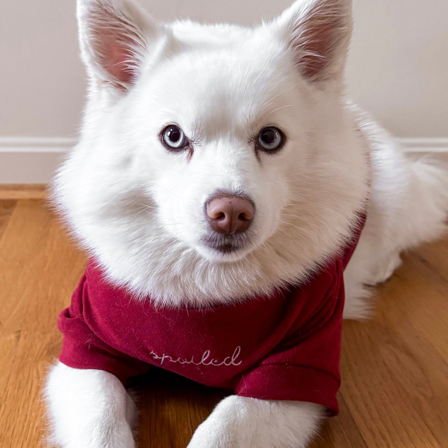 Made for the pets who are truly spoiled (as they should be). The Spoiled Sweetheart Collection features ultra-stretchy pet shirts crafted in buttery fleece fabric for the softest, coziest fit without feeling bulky. This fabric is lightweight yet warm, with a moisture-wicking finish that helps keep your pet comfy whether they’re snuggling indoors or stepping out for a chilly walk.